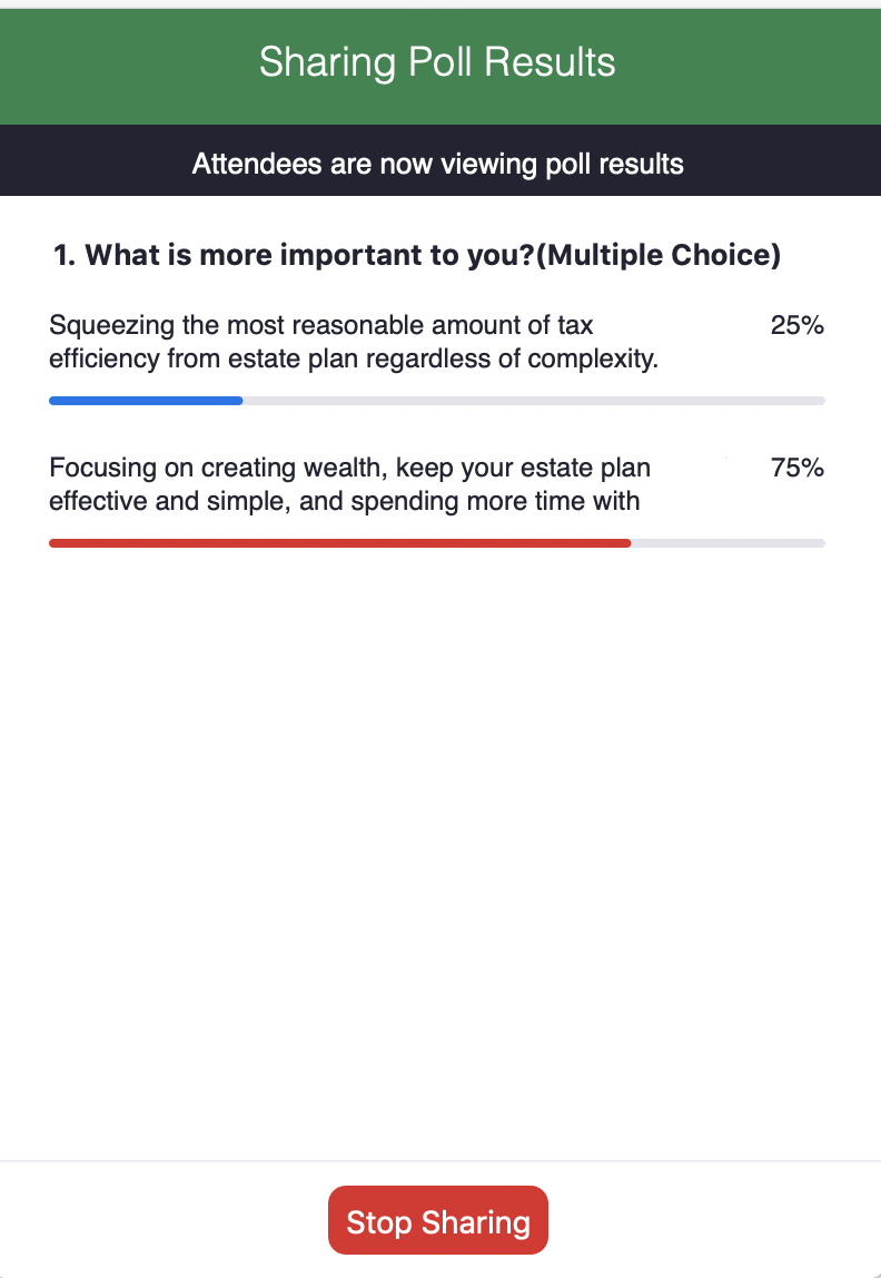 Below are the results of a poll taken during the presentation given to uber-successful millennials around estate planning.