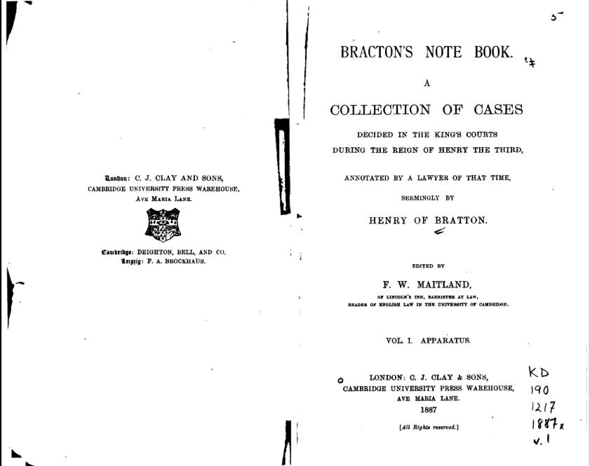[1] F.W. Maitland, Harvard Law Review, Volume 8, No. 3, October 25, 1894