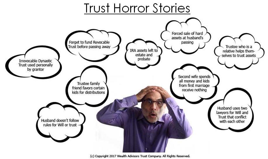 If you select a bank trust company as the trustee, they could give horrible service to your heirs, nickel-and-dime the trust with fees, or offer bad investment guidance.